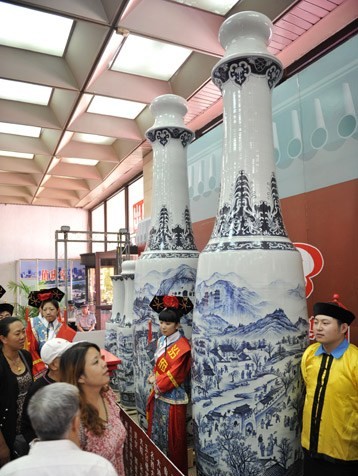On August 22, the China (Taiyuan) Coal Museum shows a pair of ceramic bottle called "the world Shanxi Merchants. This bottle was awarded the "Guinness - the highest ceramic bottle, the bottle up to 3.93 m, belly diameter of 0.93 m, the ceramic bottles use blue and white color material to draw on in the mud of ancient buildings in Shanxi , natural scenery and cultural landscape patterns, baked by the high temperature of 1330 ℃. |
